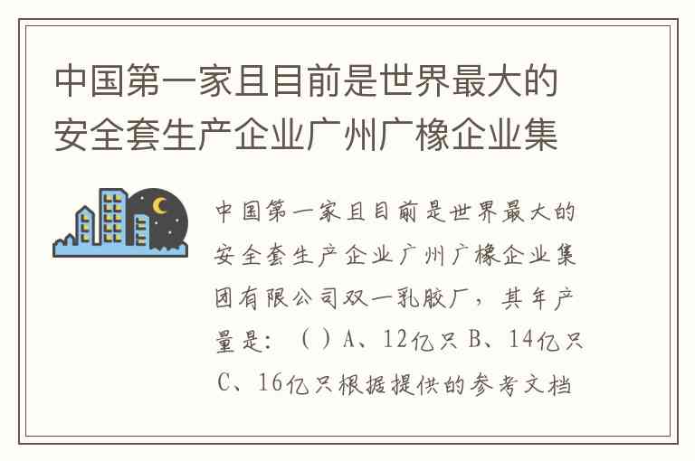 中国第一家且目前是世界最大的安全套生产企业广州广橡企业集团有限公司双一乳胶厂,其年产量是:()A、12亿只 B、14亿只 C、16亿只