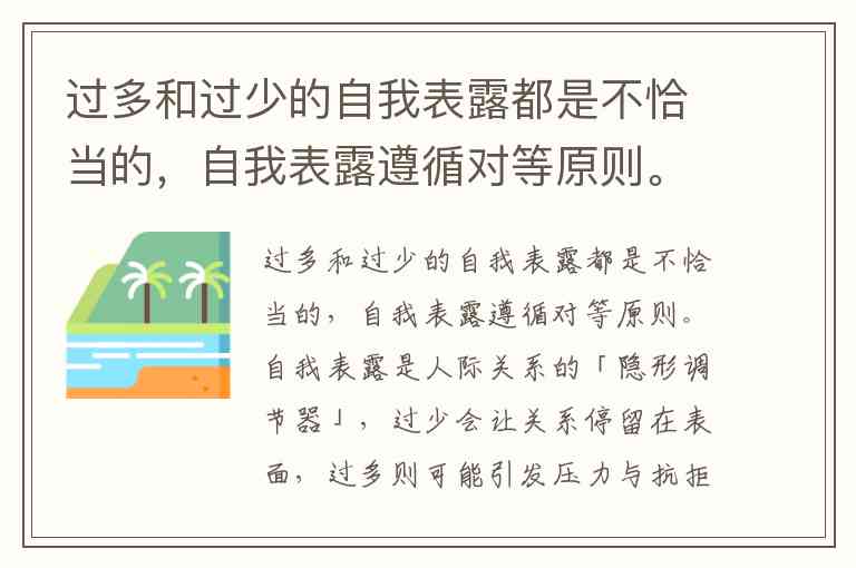 过多和过少的自我表露都是不恰当的,自我表露遵循对等原则。
