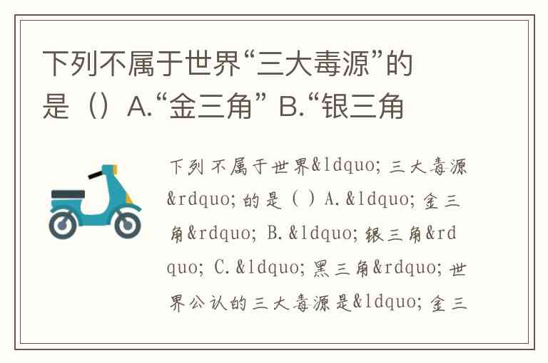 下列不属于世界“三大毒源”的是()A.“金三角” B.“银三角” C.“黑三角”