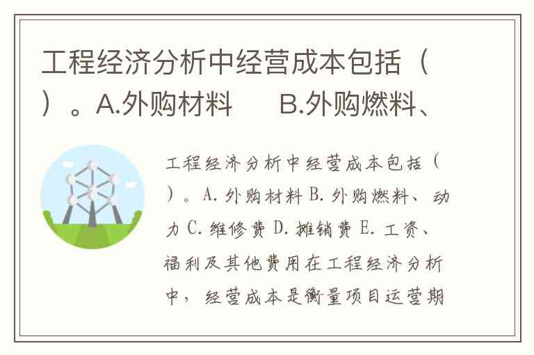 综上,正确答案为 A、B、C、E。理解经营成本的构成有助于更精准地评估项目盈利能力——例如,当某新能源项目计算经营成本时,需重点监控光伏板清洗材料费(外购材料)、运维人员工资(工资福利)及逆变器维修费(修理费),而设备折旧和贷款利息则不应计入此项分析。