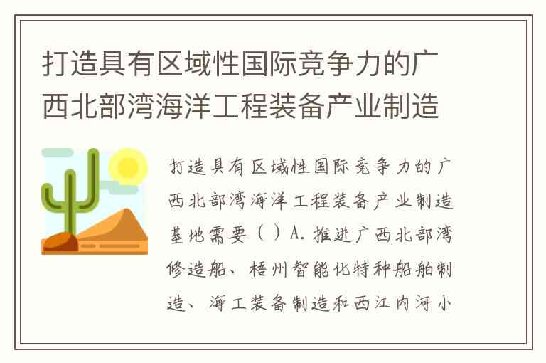 打造具有区域性国际竞争力的广西北部湾海洋工程装备产业制造基地,需聚焦重大项目建设、资源开发需求、核心装备生产及技术升级。综合广西近年来的产业布局与实践,A、B、C选项均为关键举措,而D选项因聚焦内河船舶标准化,与“北部湾海洋工程装备”的定位关联较弱。