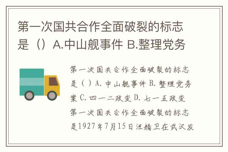 第一次国共合作全面破裂的标志是()A.中山舰事件 B.整理党务案 C.四一二政变 D.七一五政变