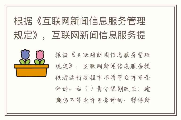 根据《互联网新闻信息服务管理规定》,互联网新闻信息服务提供者运行过程中不再符合许可条件的,由()责令限期改正;逾期仍不符合许可条件的,暂停新闻信息更新。A.原许可机关 B.原许可机关的上级机关 C.国家互联网信息办公室