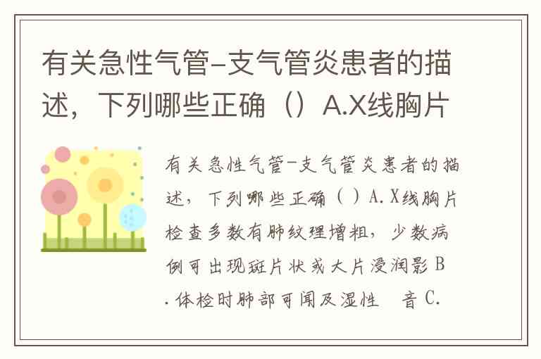 急性气管-支气管炎是气管-支气管黏膜的急性炎症,临床诊断需结合症状、体征及检查结果综合判断。以下是对各选项的具体分析: