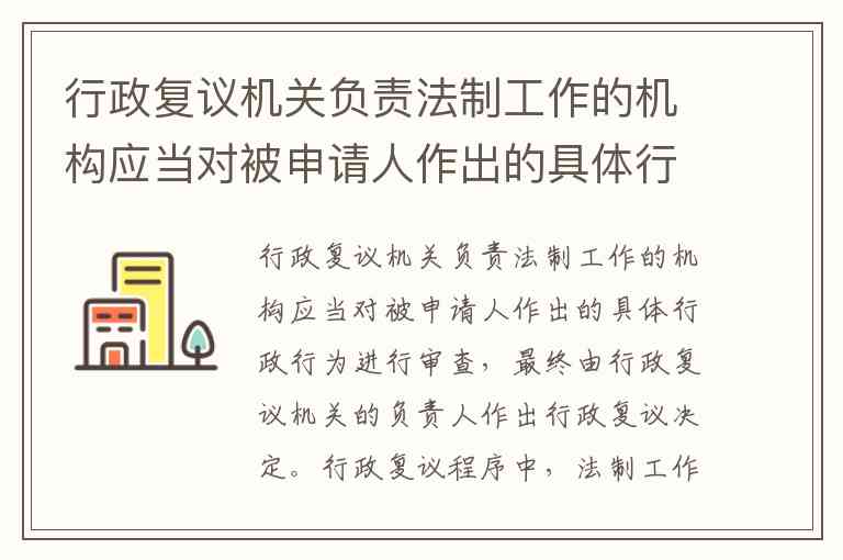 行政复议机关负责法制工作的机构应当对被申请人作出的具体行政行为进行审查,最终由行政复议机关的负责人作出行政复议决定。