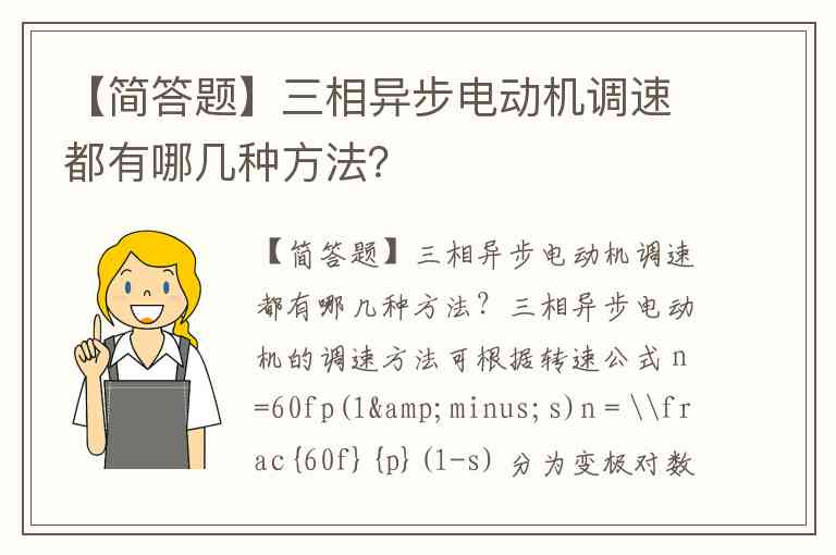 三相异步电动机的调速方法可根据转速公式 分为变极对数调速、变频调速和变转差率调速三大类,每类方法因原理不同适用于不同场景。
