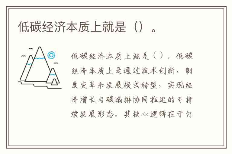 低碳经济本质上就是()。