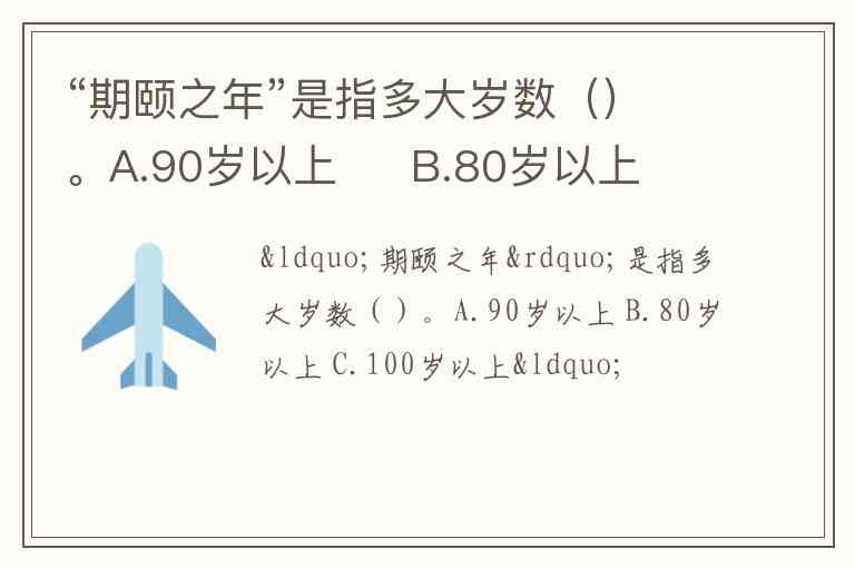 “期颐之年”是指多大岁数()。A.90岁以上 B.80岁以上 C.100岁以上