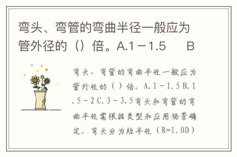 弯头、弯管的弯曲半径一般应为管外径的()倍。A.1-1.5 B.1.5-2 C.3-3.5