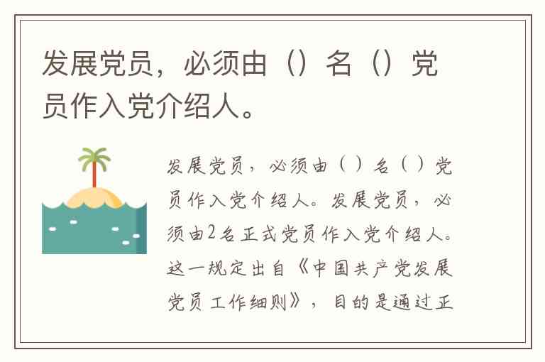 发展党员,必须由2名正式党员作入党介绍人。这一规定出自《中国共产党发展党员工作细则》,目的是通过正式党员的言传身教,确保入党申请人在思想、政治和作风上符合党员标准,同时强化发展党员工作的严肃性和规范性。正式党员需具备一定党龄和政治素养,能够如实向党组织介绍申请人的情况,并承担培养教育责任。