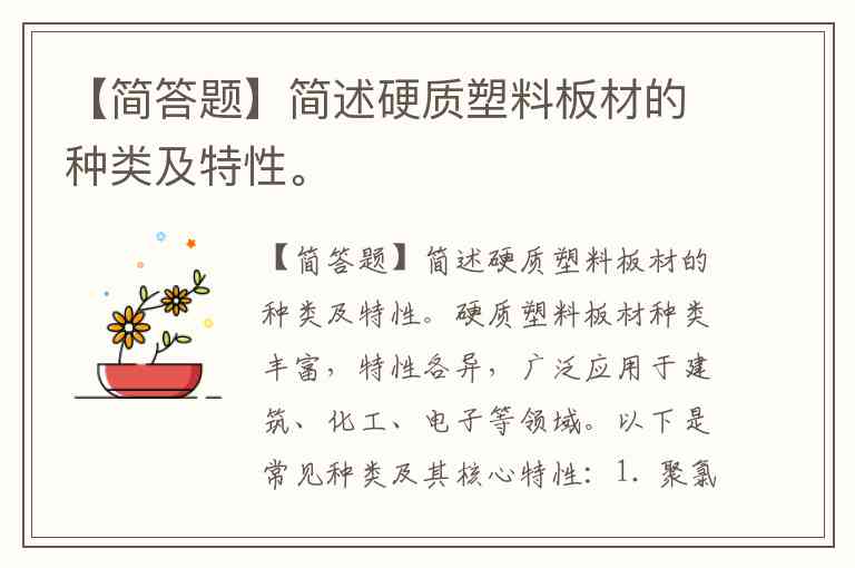 硬质塑料板材种类丰富,特性各异,广泛应用于建筑、化工、电子等领域。以下是常见种类及其核心特性: