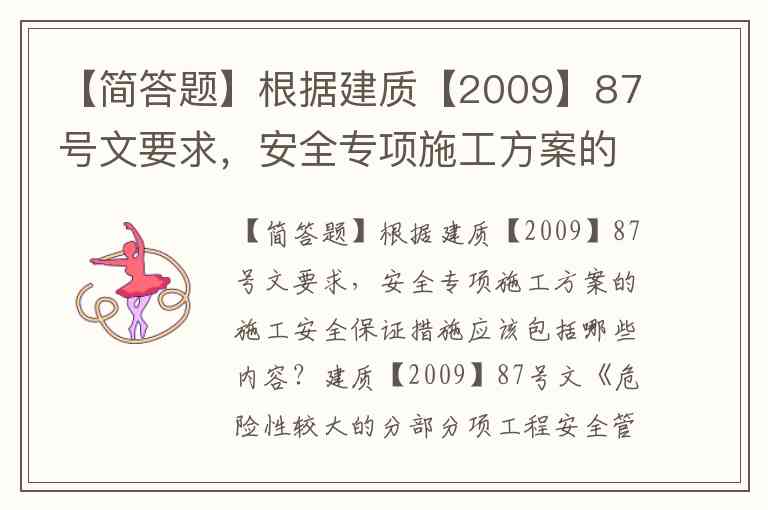 【简答题】根据建质【2009】87号文要求,安全专项施工方案的施工安全保证措施应该包括哪些内容?