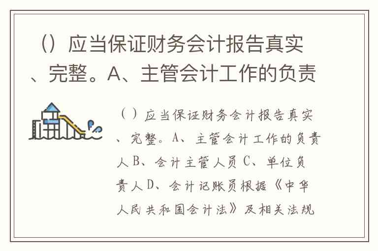 ()应当保证财务会计报告真实、完整。A、主管会计工作的负责人 B、会计主管人员 C、单位负责人 D、会计记账员