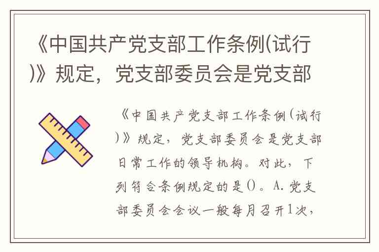 根据《中国共产党支部工作条例(试行)》,党支部委员会作为日常工作领导机构,其运作规则在多项权威解读中得到明确。正确选项为 A、B、D,具体依据如下: