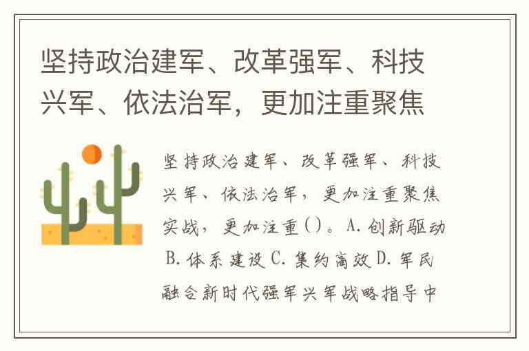 坚持政治建军、改革强军、科技兴军、依法治军,更加注重聚焦实战,更加注重( )。A.创新驱动 B.体系建设 C.集约高效 D.军民融合
