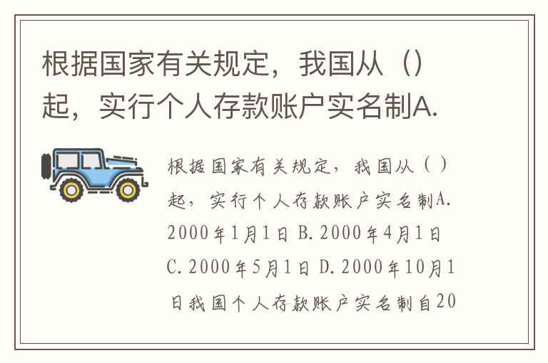 根据国家有关规定,我国从()起,实行个人存款账户实名制A.2000年1月1日 B.2000年4月1日 C.2000年5月1日 D.2000年10月1日
