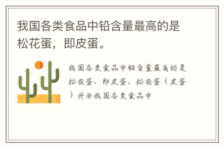 我国各类食品中铅含量最高的是松花蛋,即皮蛋。