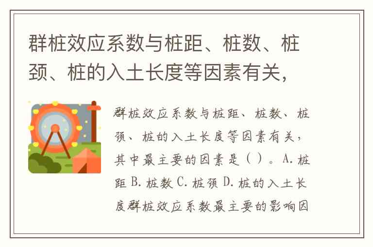 群桩效应系数与桩距、桩数、桩颈、桩的入土长度等因素有关,其中最主要的因素是()。A.桩距 B.桩数 C.桩颈 D.桩的入土长度