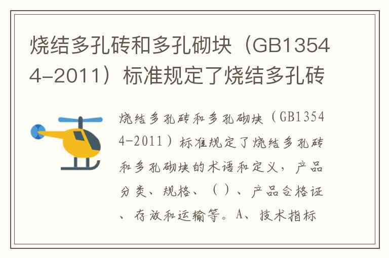 烧结多孔砖和多孔砌块(GB13544-2011)标准规定了烧结多孔砖和多孔砌块的术语和定义,产品分类、规格、()、产品合格证、存放和运输等。A、技术指标 B、试验方法 C、检验规则 D、放射性核素限量
