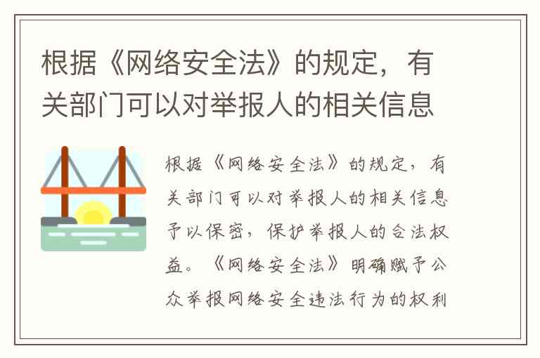 根据《网络安全法》的规定,有关部门可以对举报人的相关信息予以保密,保护举报人的合法权益。