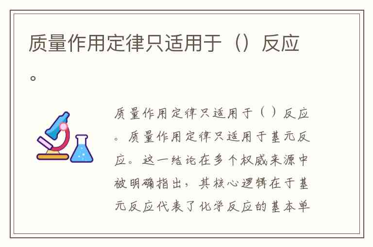 质量作用定律只适用于基元反应。这一结论在多个权威来源中被明确指出,其核心逻辑在于基元反应代表了化学反应的基本单元——即分子间直接碰撞并一步完成的反应过程。例如,反应 作为典型的基元反应,其速率方程 严格符合质量作用定律,即反应速率与反应物浓度的幂乘积成正比,幂指数对应化学计量数。