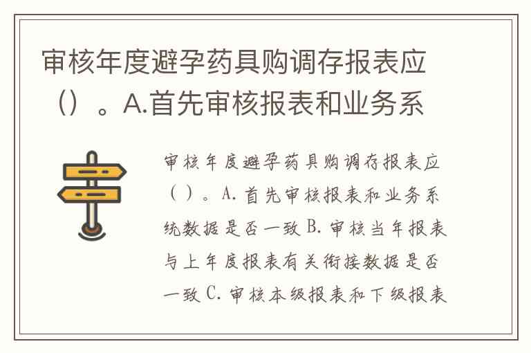 审核年度避孕药具购调存报表应()。A.首先审核报表和业务系统数据是否一致 B.审核当年报表与上年度报表有关衔接数据是否一致 C.审核本级报表和下级报表有关指标的对应关系
