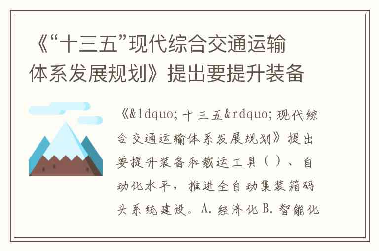 《“十三五”现代综合交通运输体系发展规划》提出要提升装备和载运工具()、自动化水平,推进全自动集装箱码头系统建设。A.经济化 B.智能化 C.信息化 D.市场化