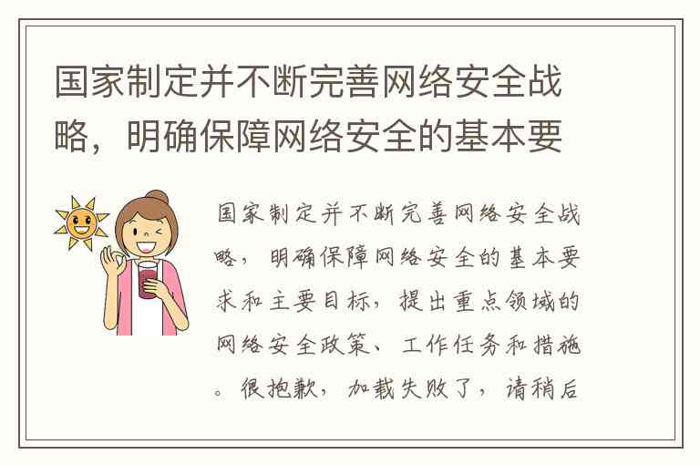 国家制定并不断完善网络安全战略,明确保障网络安全的基本要求和主要目标,提出重点领域的网络安全政策、工作任务和措施。