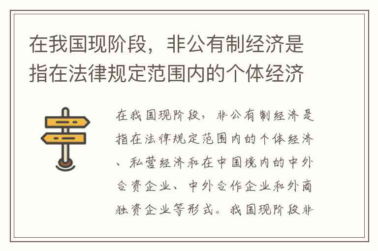在我国现阶段,非公有制经济是指在法律规定范围内的个体经济、私营经济和在中国境内的中外合资企业、中外合作企业和外商独资企业等形式。