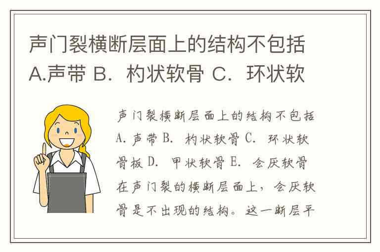 声门裂横断层面上的结构不包括A.声带 B.杓状软骨 C.环状软骨板 D.甲状软骨 E.会厌软骨