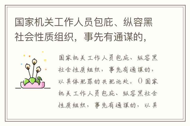 国家机关工作人员包庇、纵容黑社会性质组织,事先有通谋的,以具体犯罪的共犯论处。()