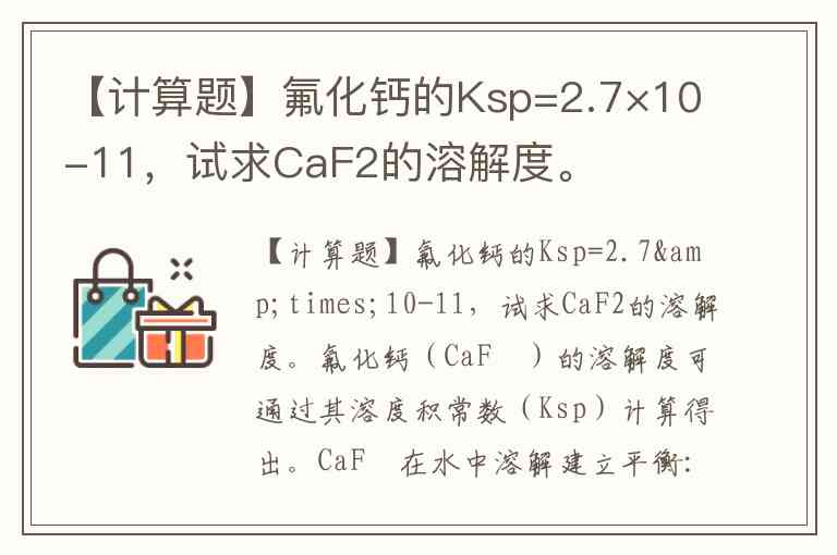 【计算题】氟化钙的Ksp=2.7×10-11,试求CaF2的溶解度。