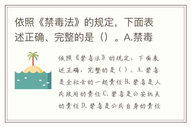 依照《禁毒法》的规定,下面表述正确、完整的是()。A.禁毒是全社会的一起责任 B.禁毒是人民政府的责任 C.禁毒是公安机关的责任 D.禁毒是公民自身的责任