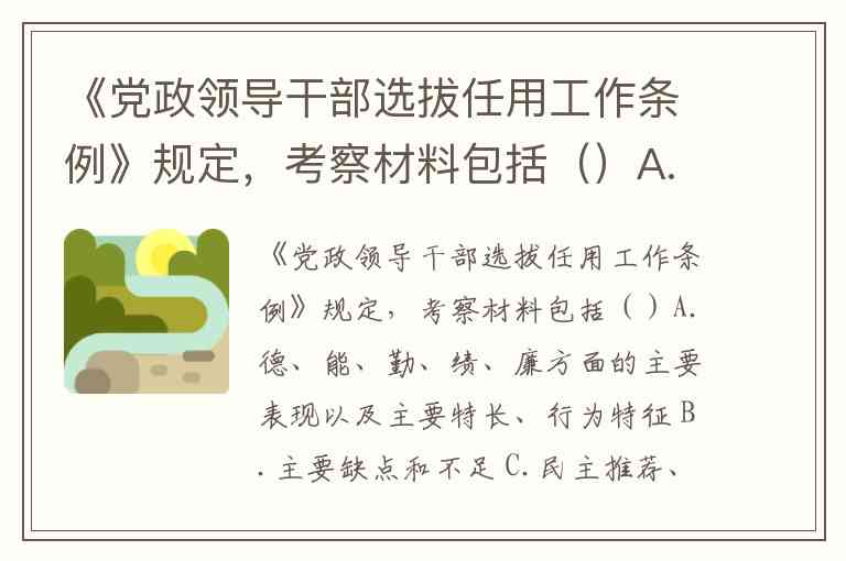 综上,题目中的四个选项A、B、C、D均为考察材料的必要组成部分,体现了《条例》对干部选拔任用工作严谨性与规范性的要求。当我们谈论"选贤任能"时,这些具体的考察要素正是将原则转化为实践的重要桥梁。