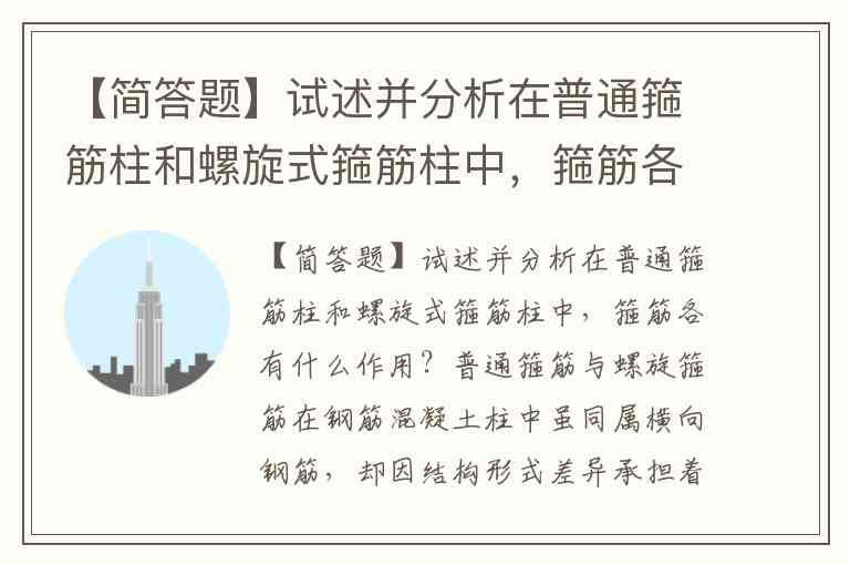 【简答题】试述并分析在普通箍筋柱和螺旋式箍筋柱中,箍筋各有什么作用?