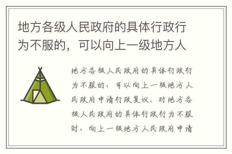 地方各级人民政府的具体行政行为不服的,可以向上一级地方人民政府申请行政复议。