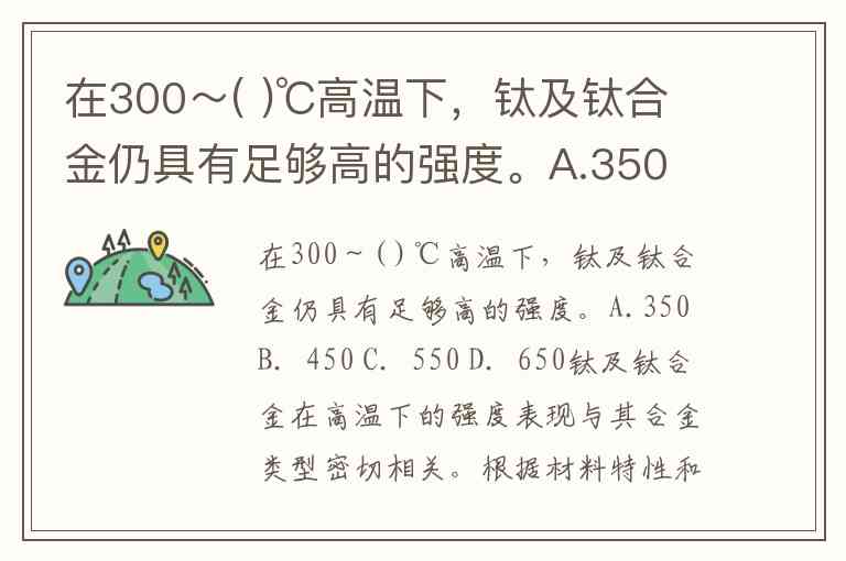 因此,题目括号中应填入550,对应选项C。这一答案既符合材料科学的经典认知,也反映了工程应用中的实际选择——既要突破温度限制,又需确保材料在复杂工况下的可靠性。未来随着粉末冶金和复合材料技术的发展,钛合金的耐高温边界可能进一步拓展,但目前550℃仍是高温钛合金强度保障的关键阈值。