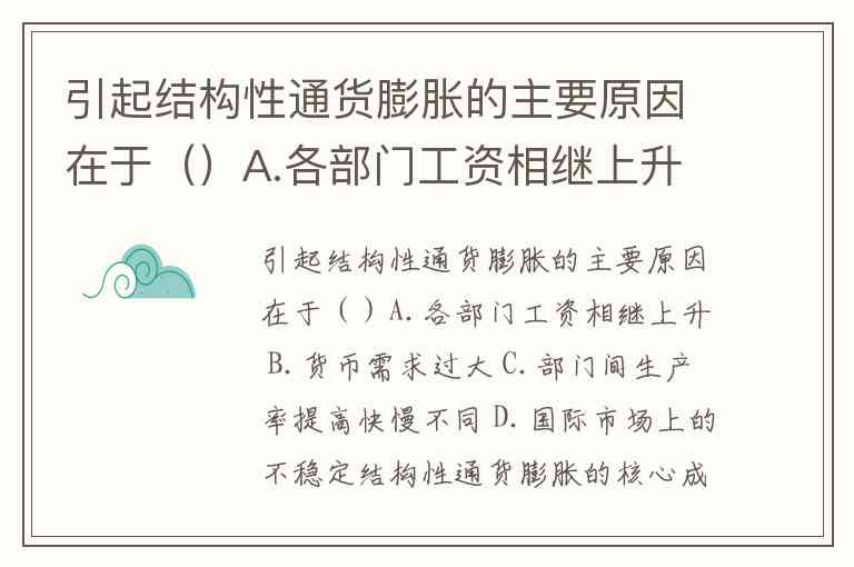 引起结构性通货膨胀的主要原因在于()A.各部门工资相继上升 B.货币需求过大 C.部门间生产率提高快慢不同 D.国际市场上的不稳定