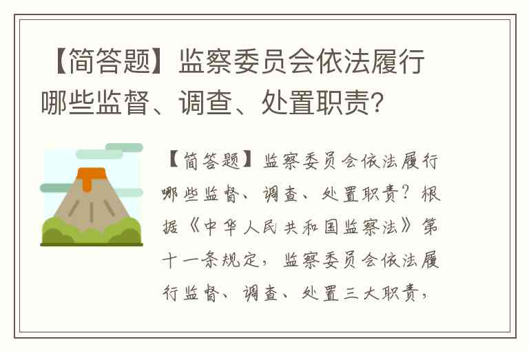 【简答题】监察委员会依法履行哪些监督、调查、处置职责?