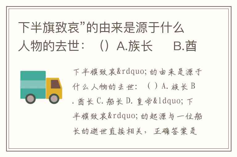 下半旗致哀”的由来是源于什么人物的去世:()A.族长 B.酋长 C.船长 D.皇帝