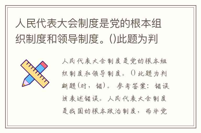 人民代表大会制度是党的根本组织制度和领导制度。()此题为判断题(对,错)。 参考答案:错误