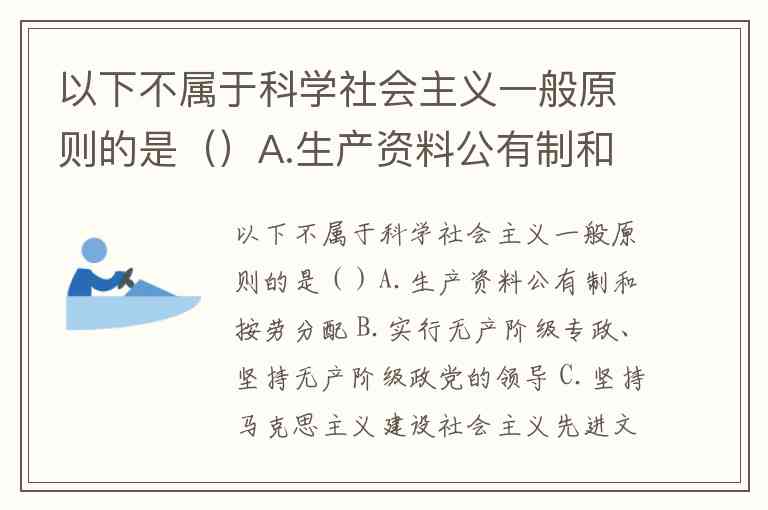 以下不属于科学社会主义一般原则的是()A.生产资料公有制和按劳分配 B.实行无产阶级专政、坚持无产阶级政党的领导 C.坚持马克思主义建设社会主义先进文化 D.生产资料私有制和按资分配