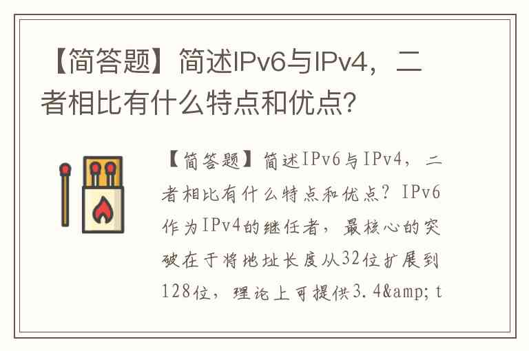 【简答题】简述IPv6与IPv4,二者相比有什么特点和优点?