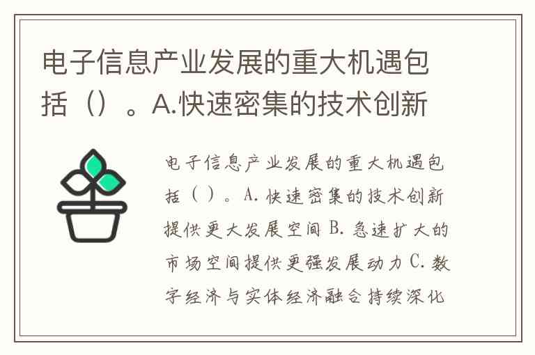 电子信息产业发展的重大机遇包括()。A.快速密集的技术创新提供更大发展空间 B.急速扩大的市场空间提供更强发展动力 C.数字经济与实体经济融合持续深化,推动行业应用市场持续扩大 D.科技创新+适度投资成为后疫情时代经济动能重启的重要引擎 E.对外交流合作进一步深化,电子信息领域的国际市场空间潜力巨大