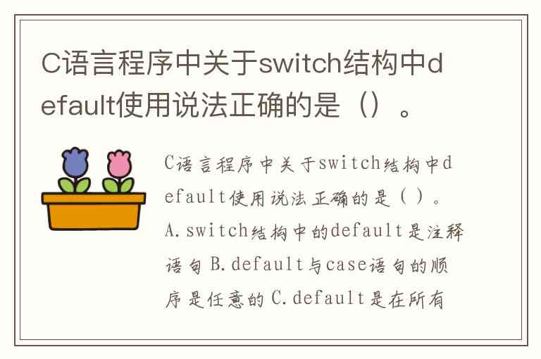 C语言程序中关于switch结构中default使用说法正确的是()。A.switch结构中的default是注释语句 B.default与case语句的顺序是任意的 C.default是在所有case都不执行的情况下才能被执行到 D.default在switch结构中可以省略