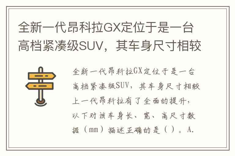 全新一代昂科拉GX定位于是一台高档紧凑级SUV,其车身尺寸相较上一代昂科拉有了全面的提升,以下对该车身长、宽、高尺寸数据(mm)描述正确的是()。A.4463/1813/1644 B.4461/1814/164 C.4461/1813/1645 D.4463/1814/1645