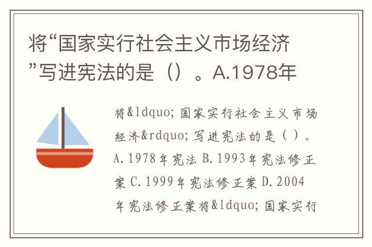 将“国家实行社会主义市场经济”写进宪法的是()。A.1978年宪法 B.1993年宪法修正案 C.1999年宪法修正案 D.2004年宪法修正案