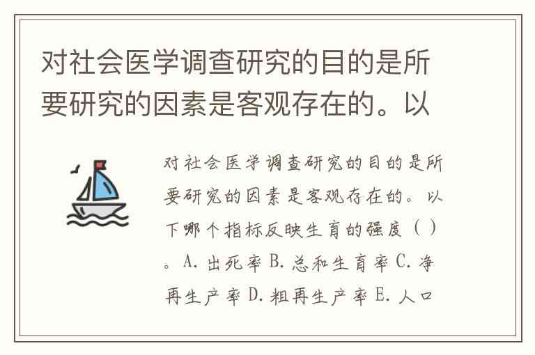 对社会医学调查研究的目的是所要研究的因素是客观存在的。以下哪个指标反映生育的强度()。A.出死率 B.总和生育率 C.净再生产率 D.粗再生产率 E.人口自然增长率