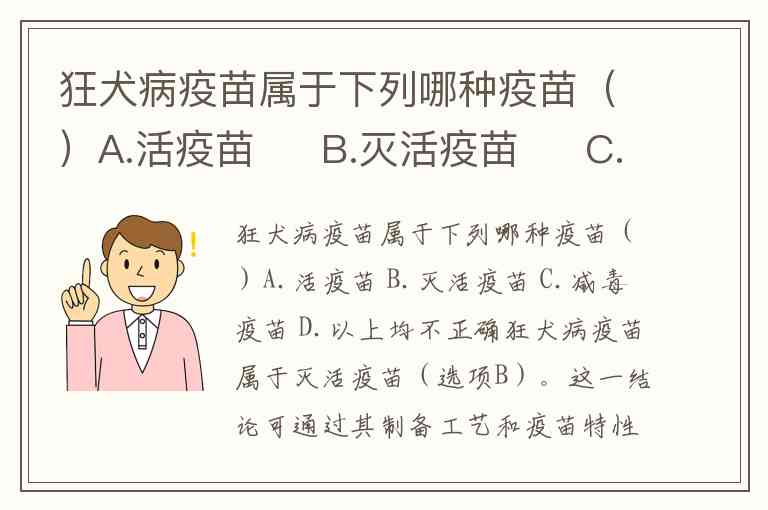 狂犬病疫苗属于下列哪种疫苗()A.活疫苗 B.灭活疫苗 C.减毒疫苗 D.以上均不正确