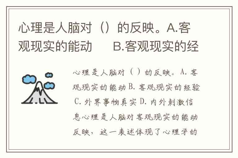 心理是人脑对()的反映。A.客观现实的能动 B.客观现实的经验 C.外界事物真实 D.内外刺激信息